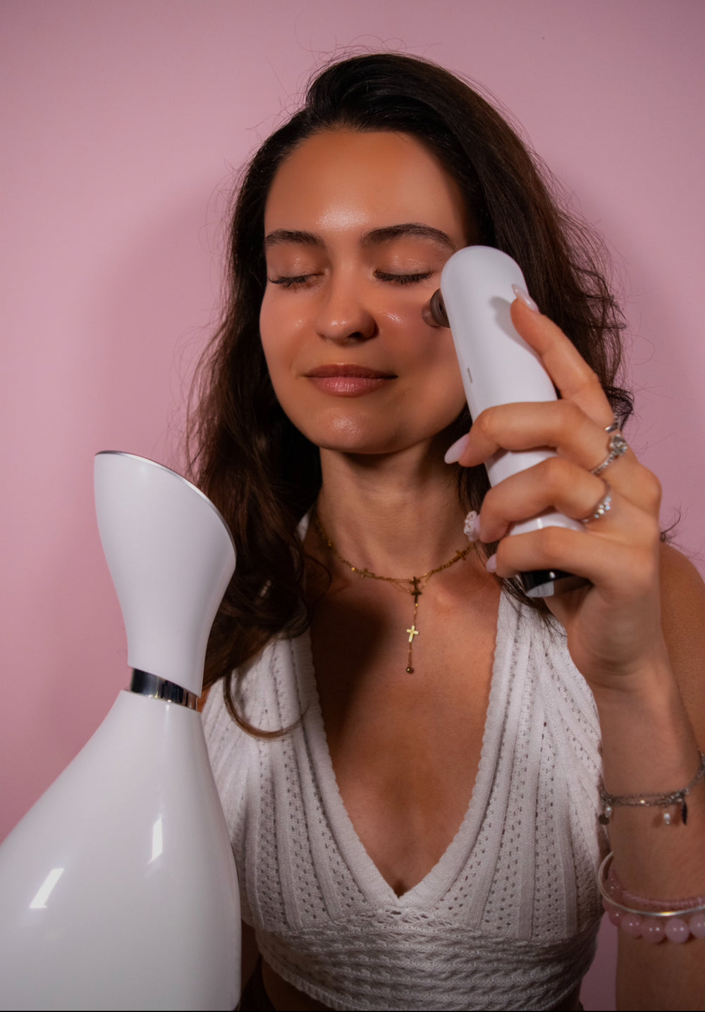 Étape 3 : Utilisez l’aspirateur avec le mode adapté à votre peau (3 modes disponibles), toujours avec le visage proche de la vapeur.